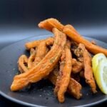 Crispy yam, avocado, cucumber with sliced avocado on top