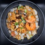 Fresh Tuna with wakame ,edamame, shredded crab, tempura bits, cucumber, avocado and fish egg