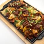 Shredded crab, grilled asparagus, cucumber, avocado with teriyaki sauce, torched beef and fried onion, onion on the top